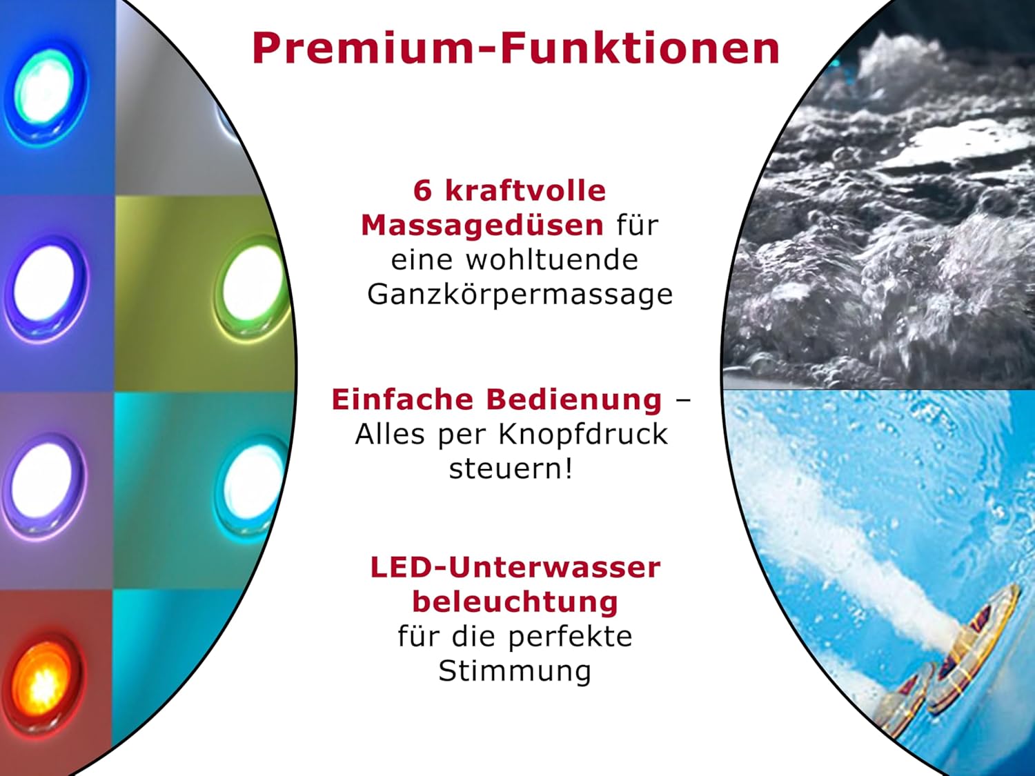 - 💆♀️ Starke Massagefunktion: viele Luft- oder Wasserdüsen für intensives Wellness-Erlebnis
