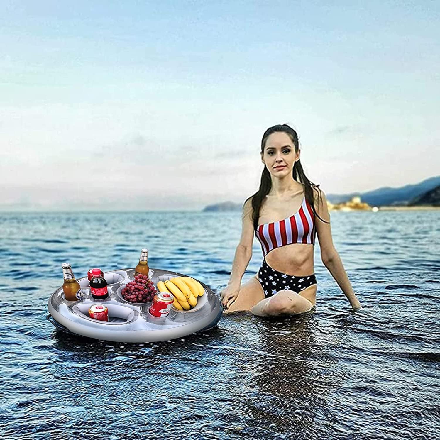 Inflatable Drink Holder 2-in-1 Floating Tray 8 Holes Large Capacity Floating Coasters Drink Holder Pool Inflatable Pool Bar Inflatable Pool Drink Holder Floating