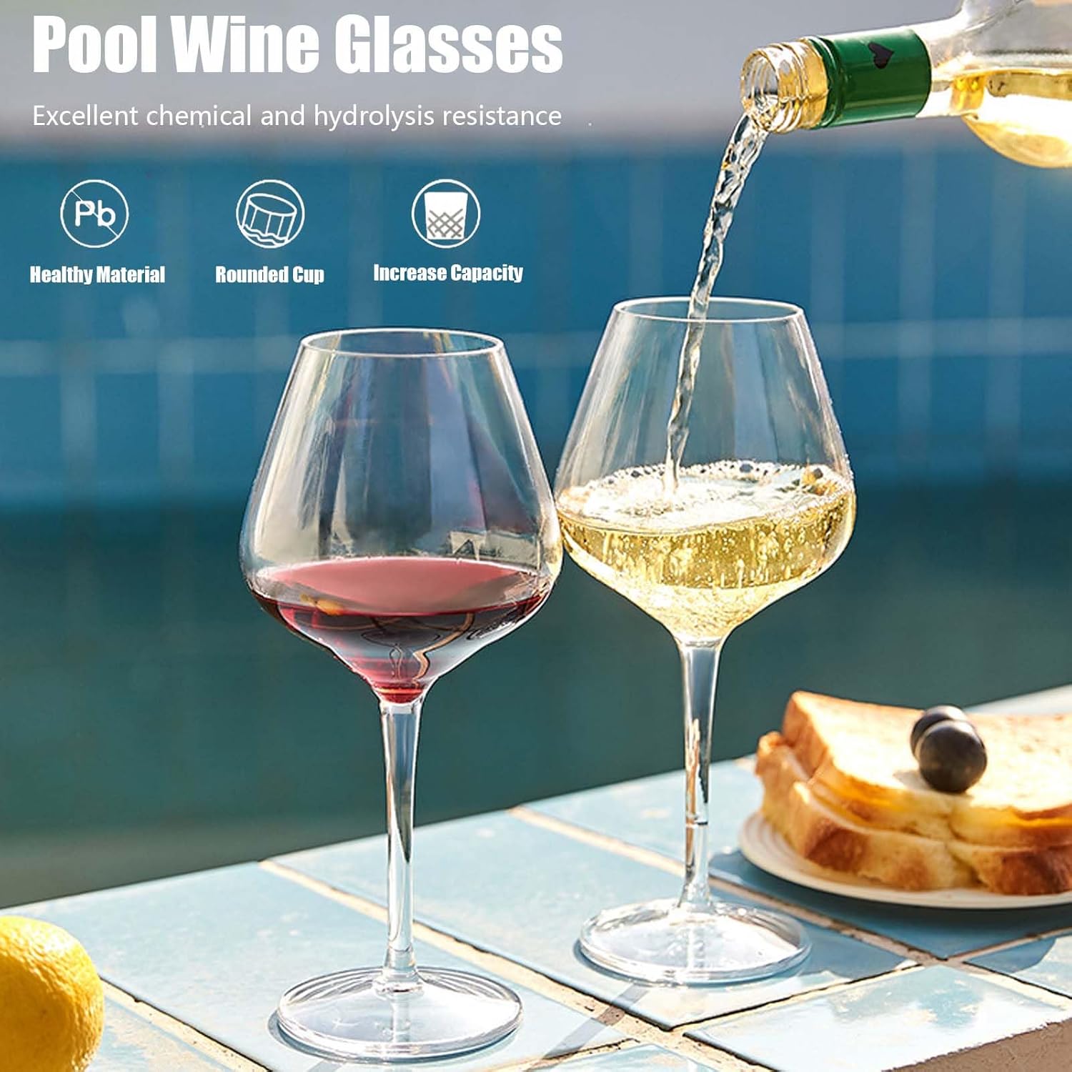 Set of 2 Floating Wine Glasses for Pool Tritan Wine Glasses Plastic Shatterproof Champagne Glasses Floating Swimming Pool Plastic Wine Glass Picnic Wine Glass