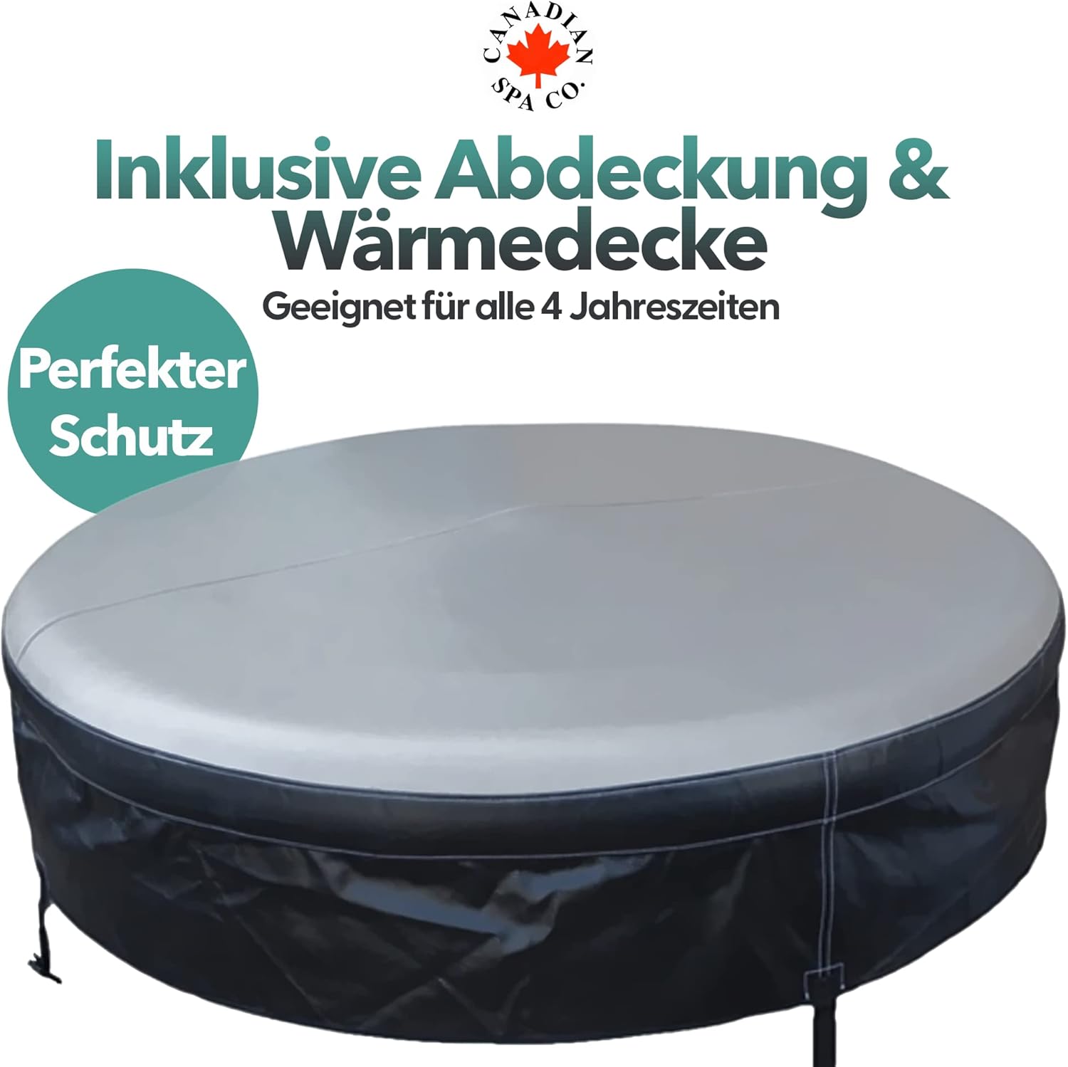 CANADIAN SPA CO. Grand Rapids Outdoor-Whirlpool für 4 Personen, Durchmesser 175 cm x 74 cm, runder, aufblasbarer Whirlpool mit 110 Hydrotherapie-Düsen und Heizdecke