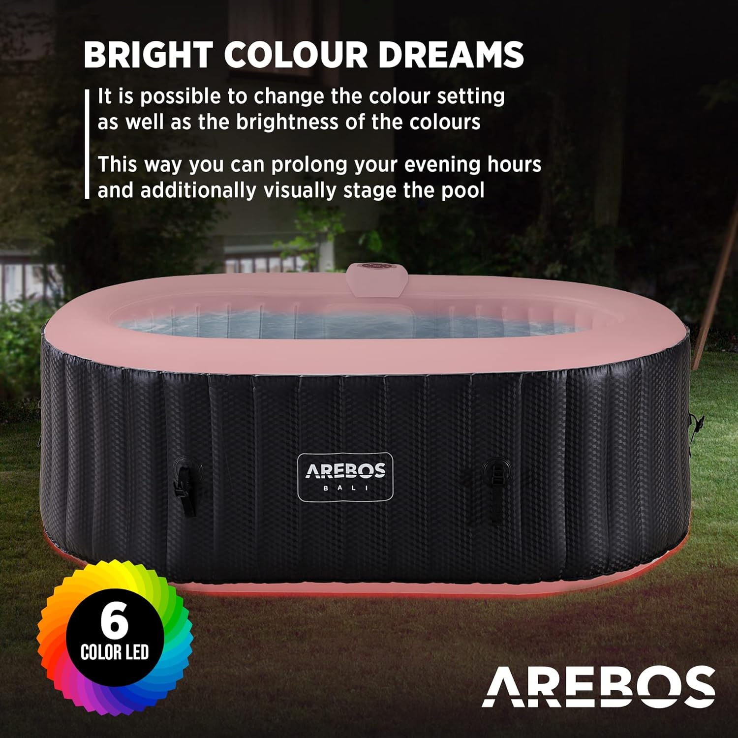 Arebos Whirlpool mit LED-Beleuchtung | Aufblasbar | Innen- und Außenbereich | 190 x 120 cm Oval | 2 Personen | 90 Massagedüsen | mit Heizung | 550 Liter | Inklusive Cover | Bubble Spa & Wellness-Massage
